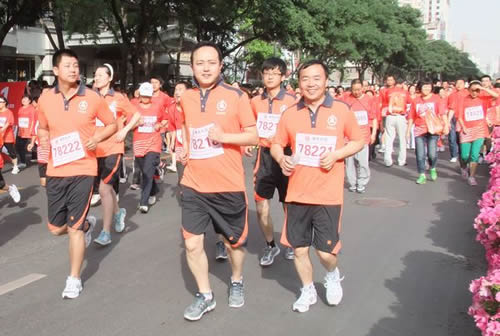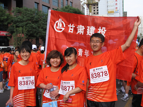 6點(diǎn)鐘,甘肅建投職工早已排成整齊的隊(duì)列在指定位置各就各位,隨著航拍飛機(jī)一次次在中心廣場(chǎng)上空盤旋,甘肅建投職工的歡呼聲響徹天地。專業(yè)運(yùn)動(dòng)員率先開跑之后,甘肅建投代表隊(duì)處于眾多的方陣中的第二方陣,425名從集團(tuán)所屬各單位抽調(diào)的職工身穿印有“甘肅建投”字樣的運(yùn)動(dòng)服裝,30人一排,邁著強(qiáng)有力的步伐,進(jìn)行5公里迷你馬拉松的比賽,全體運(yùn)動(dòng)員互相幫助、互相扶持、互相激勵(lì),順利完成了賽程,到達(dá)終點(diǎn),體現(xiàn)了甘肅建投的團(tuán)隊(duì)精神。